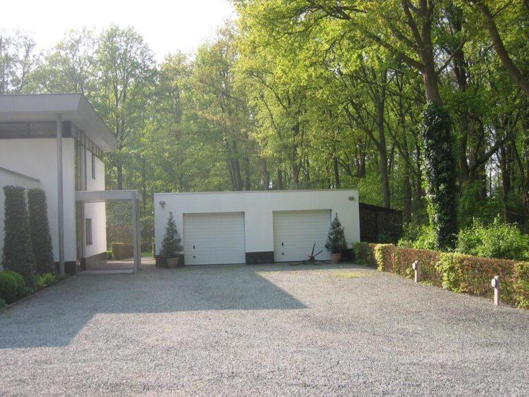 De garage is circa 109m2 groot en voorzien van dubbele garagedeuren.