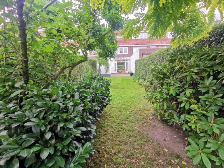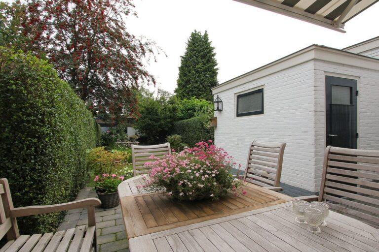 De verassend diepe achtertuin is gelegen op het noord-oosten. De tuin is prachtig aangelegd en voorzien van een betegeld terras met zonneluifel en een terras v.v. grind. Tevens is er een groot gazon in de tuin aanwezig en een schuurtje/berging.