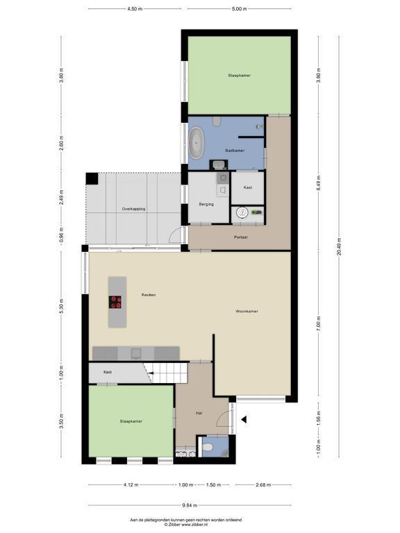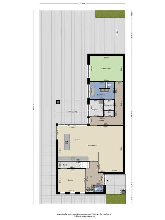 Wat deze woning zo bijzonder maakt is de deur in de woonkamer naar een verlengde van de woning. Hier kom je terecht in een portaal waar zich een berging met witgoedaansluiting, een badkamer met inloopdouche, bad, toilet en wastafel en een slaapkamer bevinden. Daarnaast is het in de badkamer mogelijk een infraroodsauna aan te sluiten.