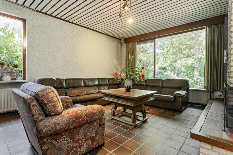 Binnenkomend in de living worden twee dingen direct duidelijk: 1. Er is hier zeker werk aan de winkel, maar 2. Wat een leuk en gezellig huis is dit! De woning heeft met zijn grootte, indeling en ligging echt de potentie van een op en top gezinshuis.