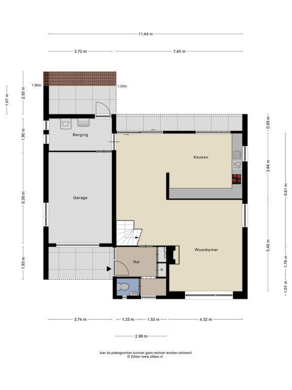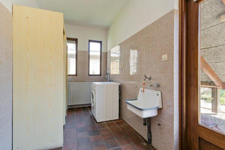 De bijkeuken met achterom en witgoedaansluitingen geeft toegang tot de inpandige garage. De garage kan natuurlijk dienst doen als berging voor een auto, spullen, voorraad etc. Echter, met wat kleine aanpassingen creëer je hier ook je thuiswerkplek, hobbyruimte of chillroom. Een kanteldeur geeft toegang tot de inrit.