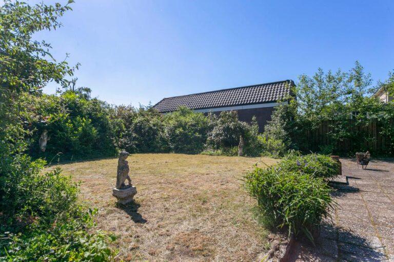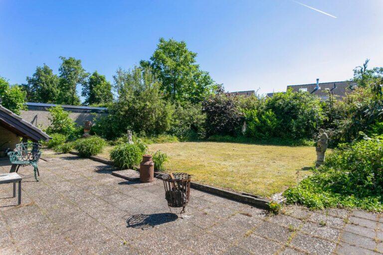 Dat de woning is gelegen op een heerlijk ruim perceel zien we vooral aan de achterzijde. De tuin is aangelegd met een riant terras aan de achtergevel, een lekker groot gazon en rondom flinke borders met vaste beplanting in de vorm van struiken en boompjes.