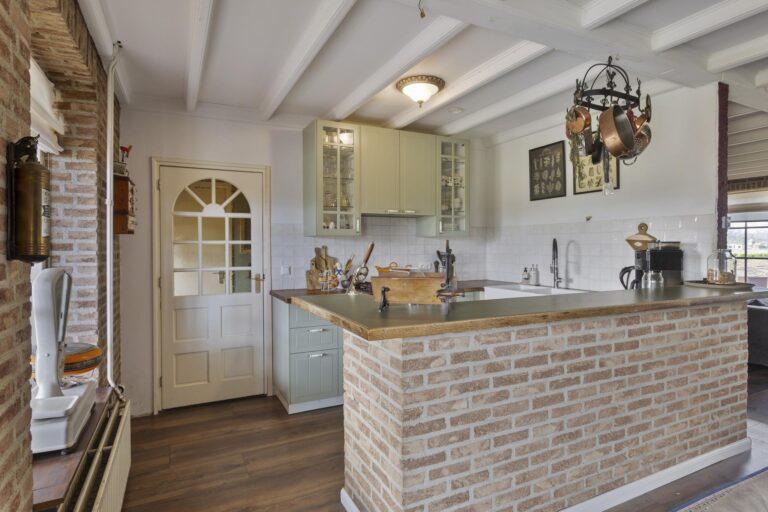 Bij binnenkomst kom je in de ruime hal, die toegang geeft tot de woonkamer. De lichte woonkamer van circa 45 m² is een fijne plek om te ontspannen, met een prachtig vrij uitzicht over het omliggende landschap. De aangrenzende keuken, volledig vernieuwd in 2023, is voorzien van een 5-pits gaskookplaat en afzuiging, elektrische oven, inbouwkoelkast, dubbele spoelbak met mengkraan. Een aansluiting voor inductie is aanwezig. In deze keuken is voldoende werkruimte om heerlijke maaltijden te bereiden en het contact te hebben met de woonkamer.