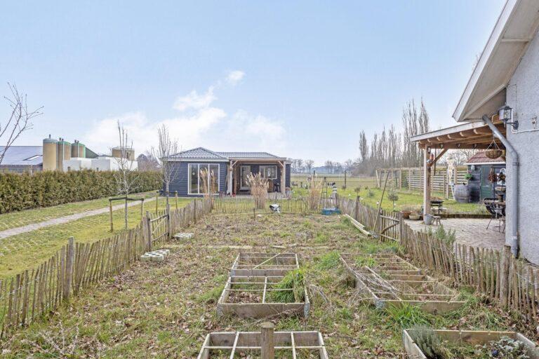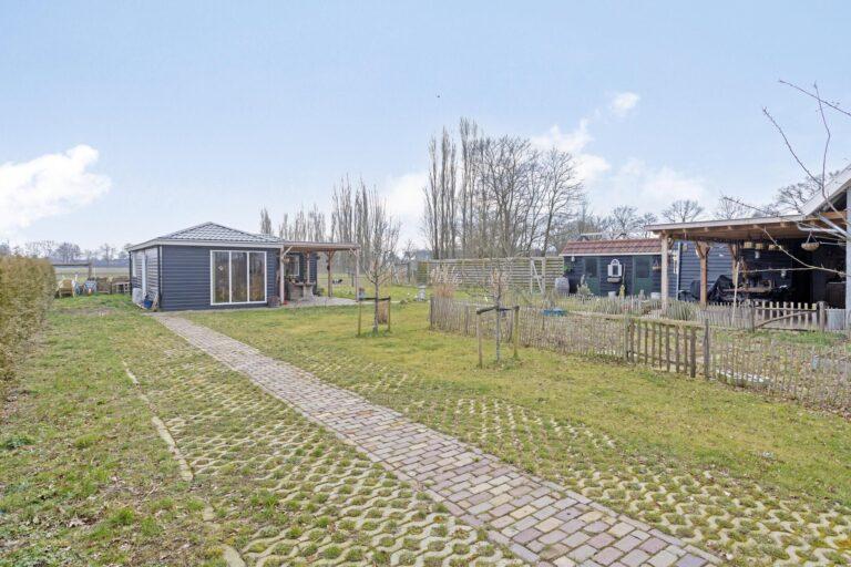 De woning is gelegen op een ruim perceel van 1.087 m², met een tuin rondom en prachtig vrij uitzicht. In 2023 is de buitenruimte grotendeels opnieuw aangelegd, met een dubbele poort en looppoort, sierbestrating van boerenklinkers en een oprit van beton graskeien die doorloopt tot aan de mantelzorgwoning. Ook zijn er diverse fruitbomen geplant, waaronder appel-, peren- en pruimenbomen.
