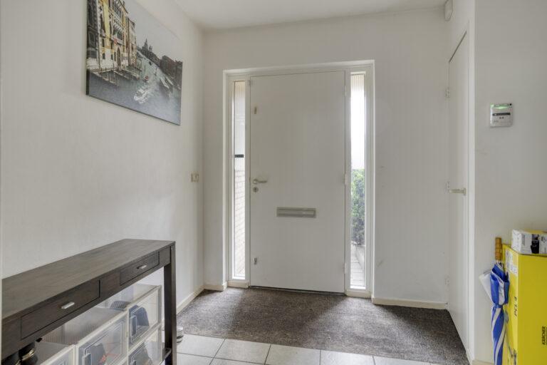 De brede oprit en verzorgde voortuin leiden naar de entree. Binnen wordt u verwelkomd door een lichte hal die toegang geeft tot de woonkamer en keuken.