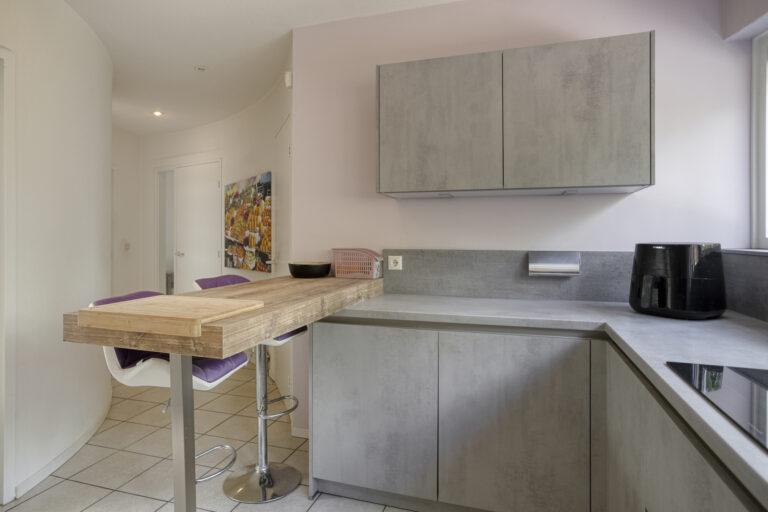 De nieuwe keuken is modern, praktisch en stijlvol afgewerkt. Voorzien van een inductiekookplaat, koelkast, veel kastruimte en een strak werkblad met dubbele spoelbak, is dit een plek waar koken echt een plezier wordt.