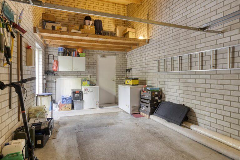 De inpandige garage (23 m²) is bereikbaar vanuit de woning en via de oprit, en is voorzien van een sectionaal deur. De oprit biedt parkeerruimte voor meerdere voertuigen.