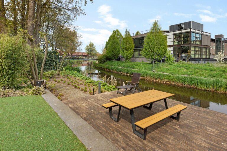 Het appartement beschikt over een eigen balkon waar je heerlijk buiten kunt zitten. Daarnaast is er aan de achterzijde een gezamenlijke tuin aan het water waar je gebruik van mag maken en kunt genieten van de heerlijke zomeravonden. Ook staat er vrijstaande houten berging (gezamenlijk) voorzien van elektra – ideaal voor het stallen van fietsen.