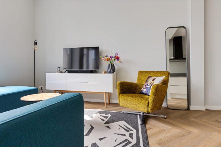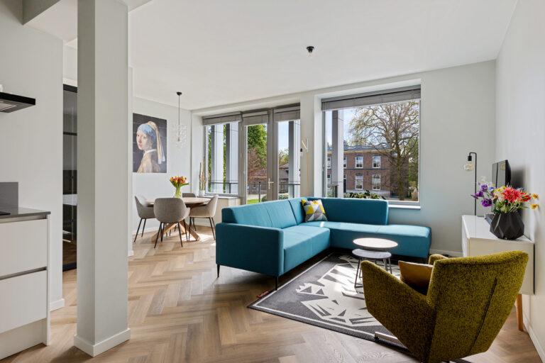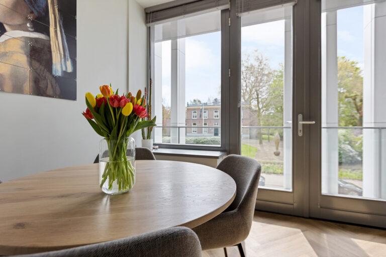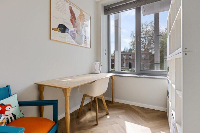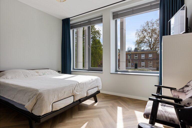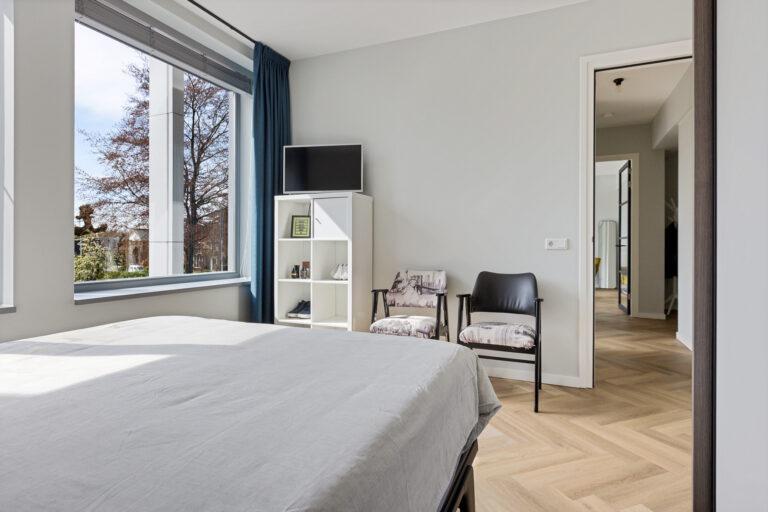 Het appartement beschikt over twee slaapkamers, ideaal als hoofdslaapkamer en bijvoorbeeld een werk- of logeerkamer.