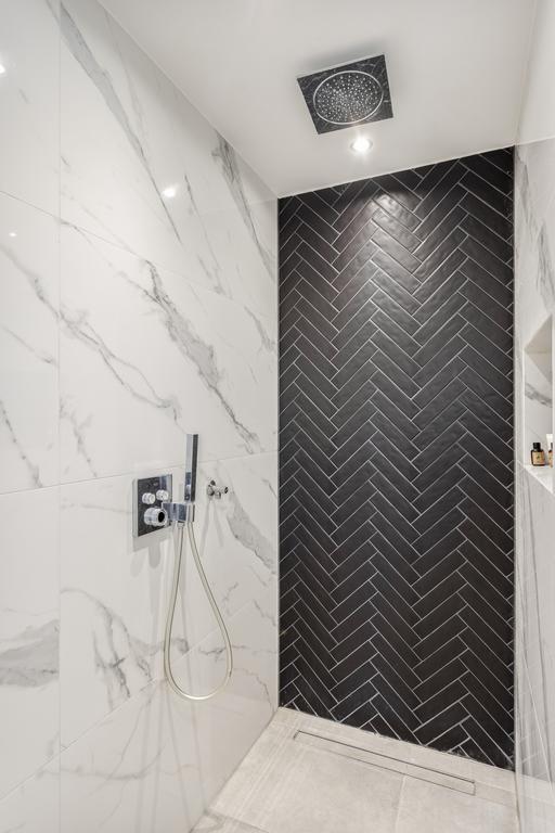 Ook de 1e verdieping is onlangs geheel gerenoveerd. Hier zijn kunststof kozijnen geplaatst, alle wanden opnieuw gestuukt en een fraaie, luxe badkamer geplaatst. De badkamer is voorzien van een fantastisch mooie grote marmeren tegel, een royale inloopdouche met ‘’rainshower’’, en een dubbel wastafel meubel met spiegelkast. Het toilet is separaat, wel zo praktisch!