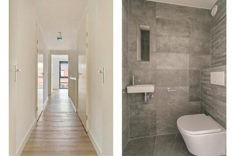 Wauw! Het luxe sanitair van de woning bestaat uit een separate toiletruimte op iedere verdieping en een riante badkamer met dubbele wastafel in badmeubel, inloop douche en ligbad op de verdieping. Dit alles geheel smaakvol afgewerkt met prachtig grijs tegelwerk op wanden en vloeren.
