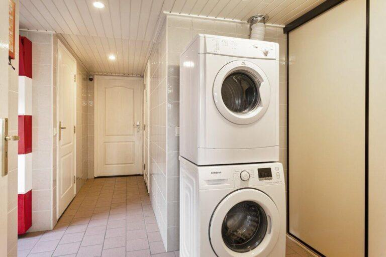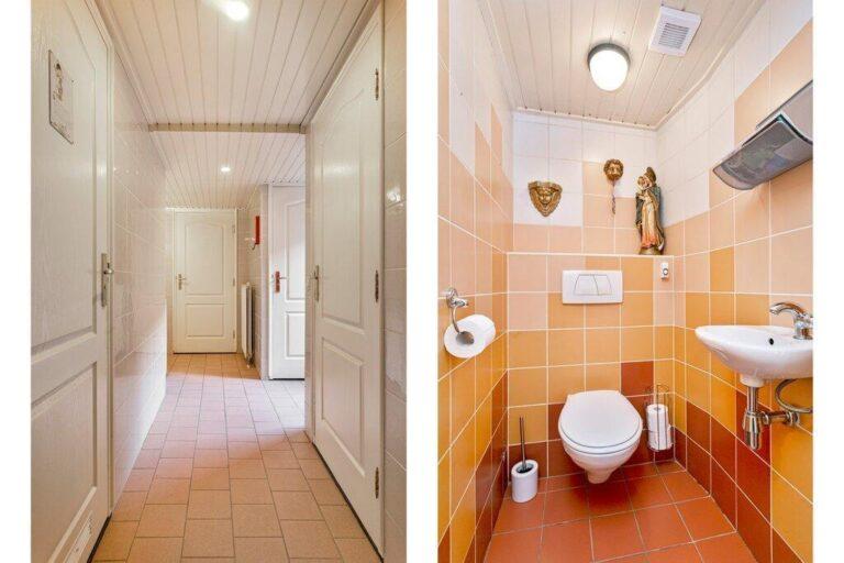 De tweede badkamer bestaat uit een nette wastafel met badmeubel en douche. De badkamer is geheel v.v. licht tegelwerk en een verlaagd plafond met inbouwverlichting.