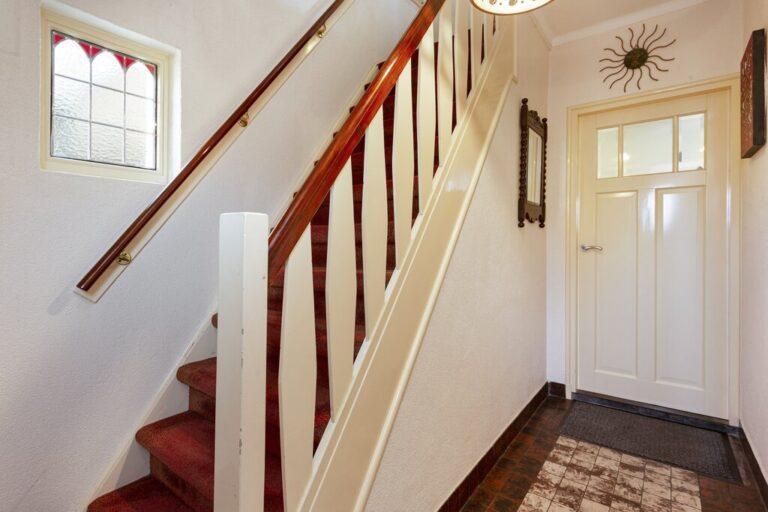 De aan de voorzijde gelegen entree geeft toegang tot de hal met trapopgang en meterkast. De hal geeft toegang tot de Z-vormige woonkamer.