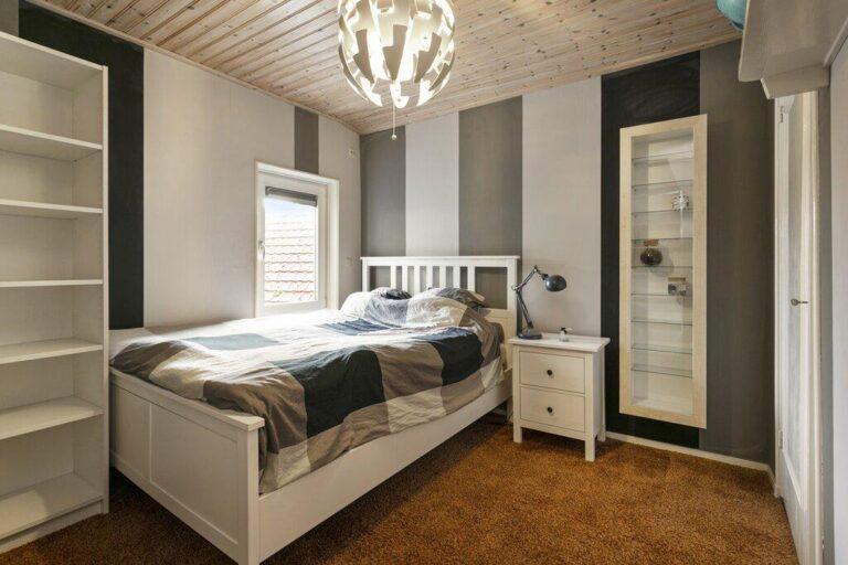 Alle drie de slaapkamers zijn groot genoeg voor een tweepersoonsbed, twee beschikken er over een handige vaste kast. De slaapkamers zijn afgewerkt met vloerbedekking, behangen wanden en een verlaagd plafond.